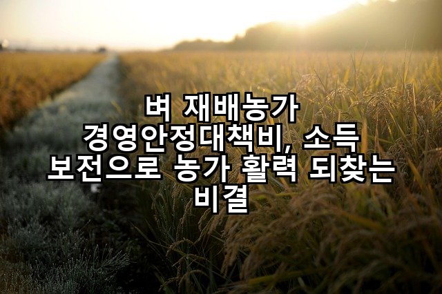 벼 재배농가 경영안정대책비: 위기 극복의 든든한 버팀목